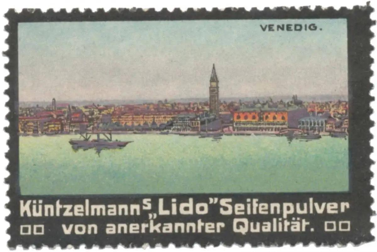 Küntzelmann's Lido Seifenpulver von anerkannter Qualität, Schiff, Größe/Zustand: 3x5 , guter Zustand, Original alte Reklamemarke die seinerzeit für die Werbung benutzt wurde