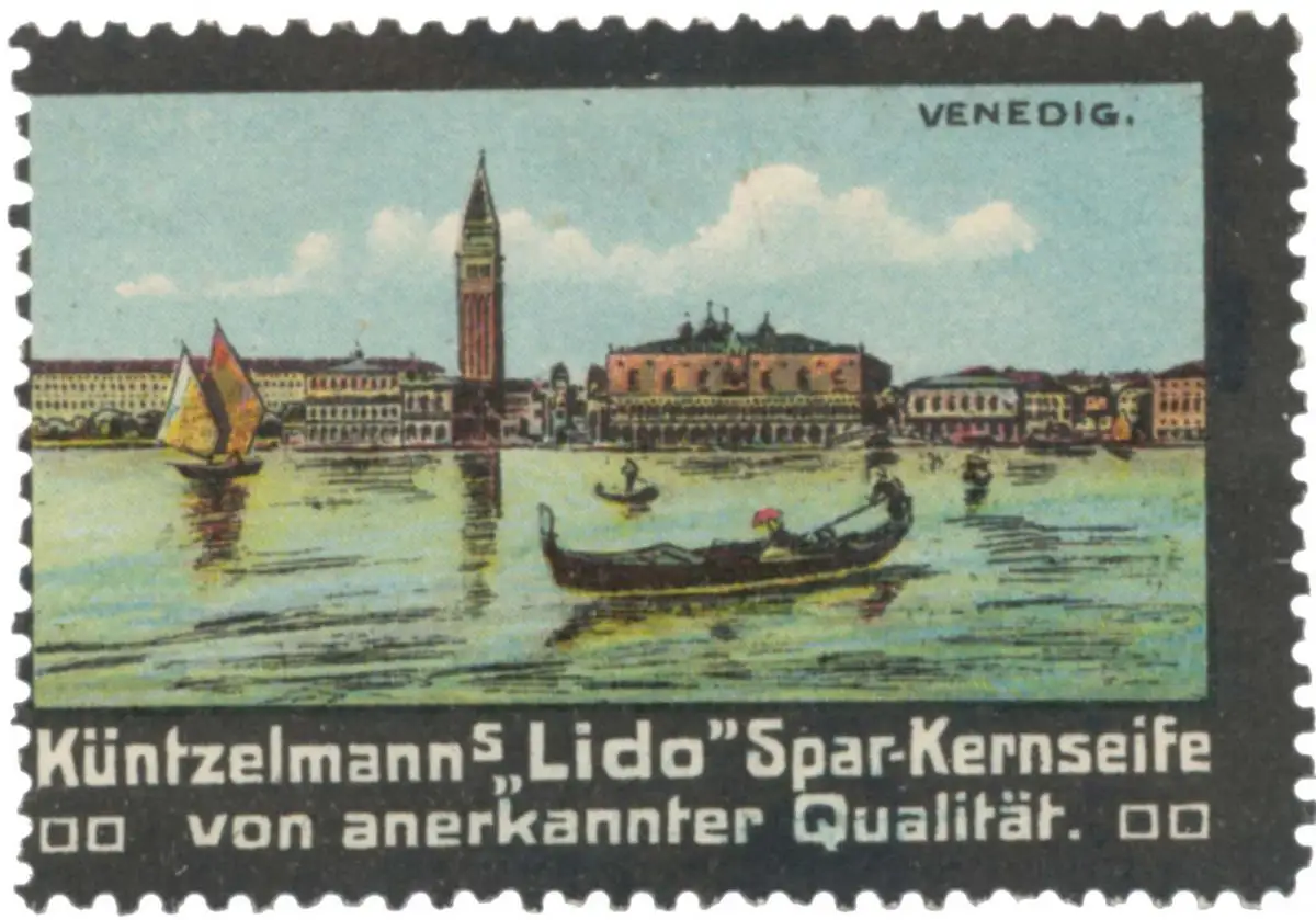 Küntzelmann's Lido Seifenpulver von anerkannter Qualität, Größe/Zustand: 3x5 , guter Zustand, Original alte Reklamemarke die seinerzeit für die Werbung benutzt wurde