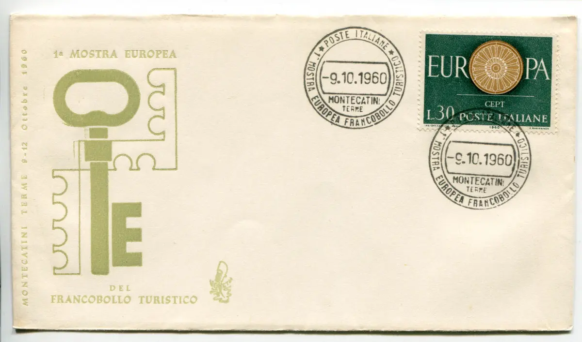 Venetia Club FDC - Europa - Touristenmarke Umschlag - vom Venetia Club für die I. vorbereiteter figürlicher Umschlag. Ausstellung Europäische Touristenmarke vom 9.10.60 - Jahr. Spezial von Montecatini Terme - Selten - Nr. 1053/OUTLET