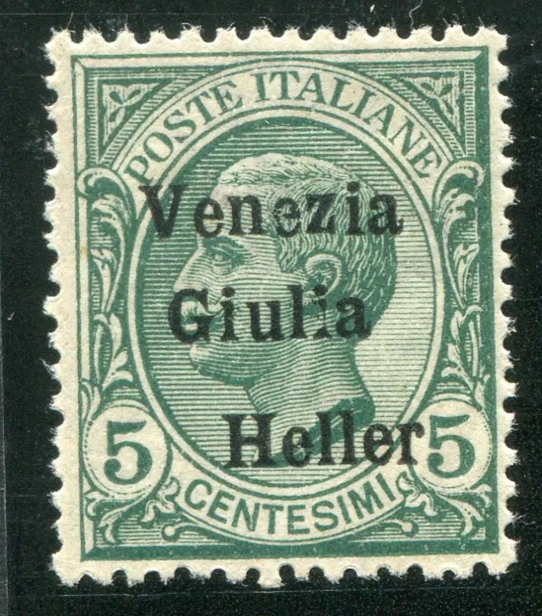Venezia Giulia - Leoni 5 Heller Fehler ohne Ziffer 5 Vollgummi - Venezia Giulia - Leoni 5 Heller Nr. 30ca Kompositionsfehler ohne Ziffer 5 im Aufdruck - Ungewöhnlich - Kat. euro 330 Code 873/11