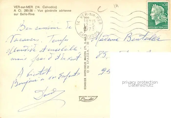 Ver-sur-Mer Vue generale aerienne sur Belle Rive Ver-sur-Mer postalisch gelaufen 1973 Erhaltung siehe scans [WerneD78] WernPID7