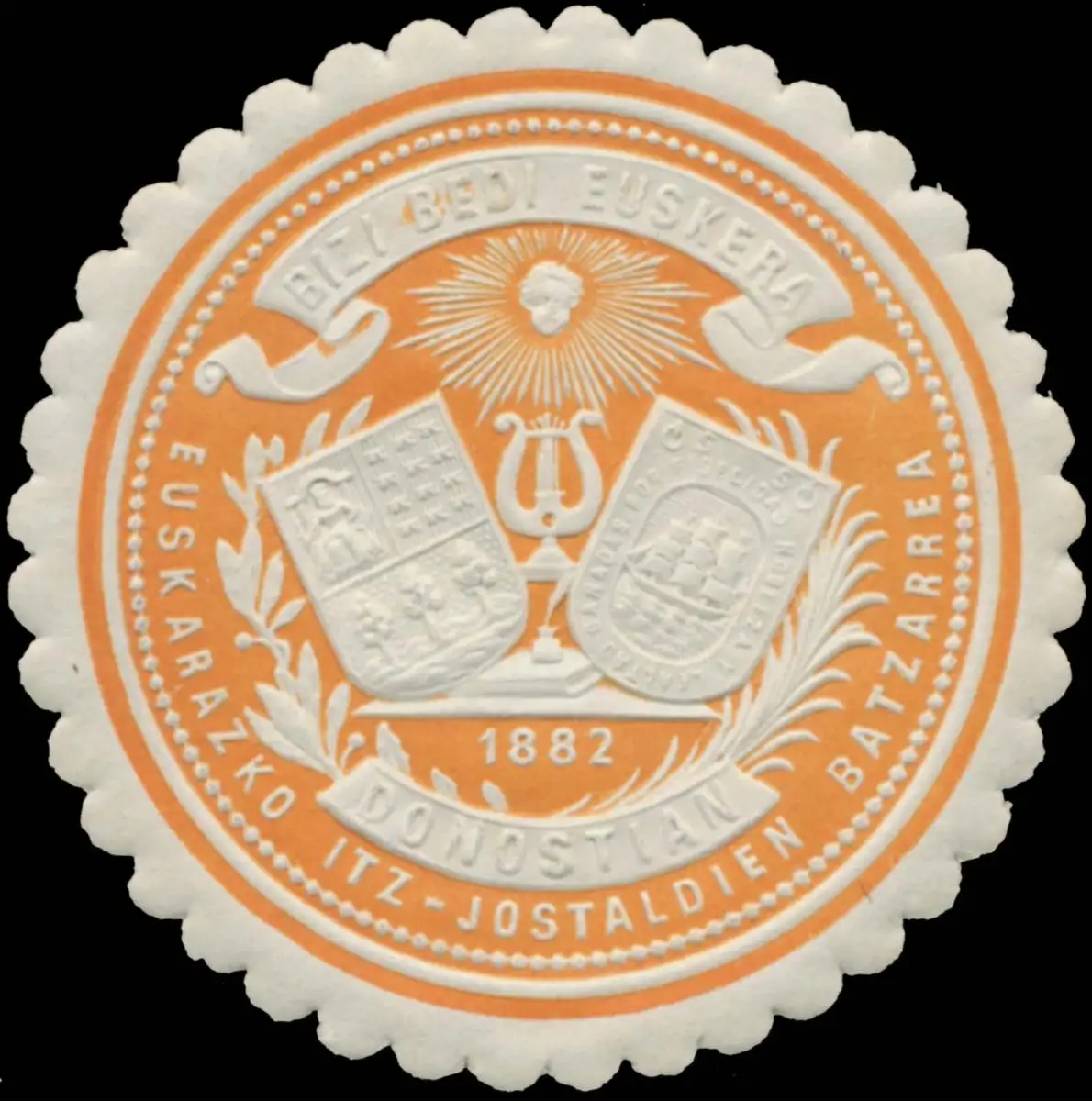 Basken, Spanien, Musik, orange, Größe/Zustand: 5 , guter Zustand, Original Verschluss-Siegelmarke aus Papier welche früher von Behörden, Firmen etc. zum Versiegeln der Briefe benutzt wurden