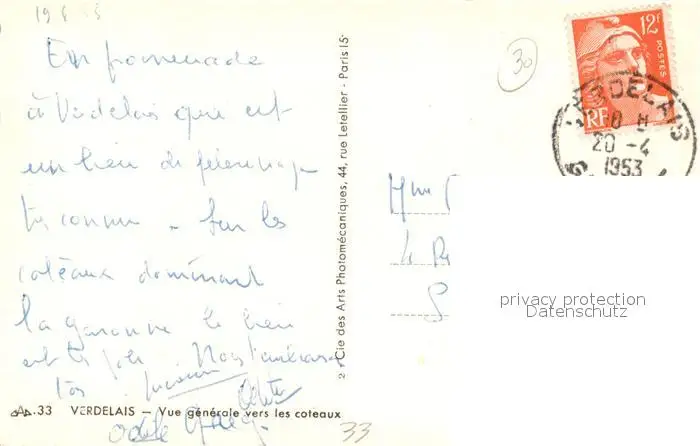 Verdelais Vue generale Verdelais postalisch gelaufen 1953 Erhaltung siehe scans [WerneD78] WernPID7