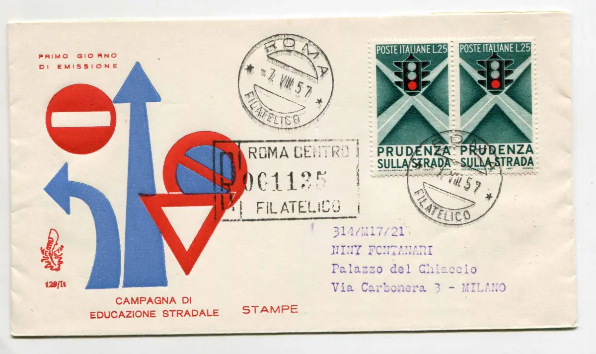 Umschlag - Verkehrserziehung Nr. 815 Paar auf Umschlag Racc. nach Mailand mit Ann. Ankunft Cod. 488/14