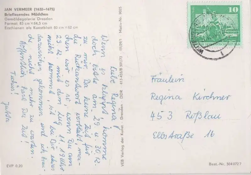 Vermeer Brieflesendes Mädchen