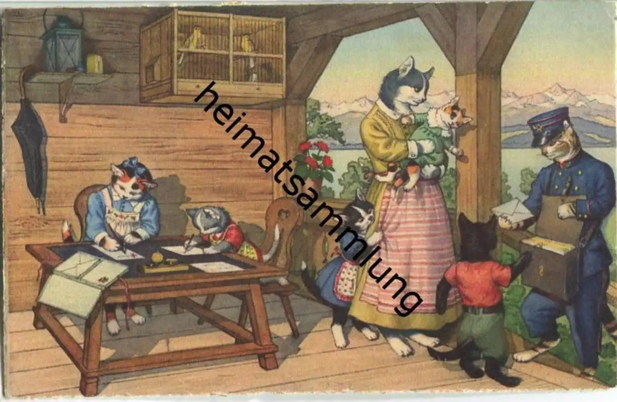 Vermenschlichte Katzen - Die Post ist da - No. 4744 Edition Max Künzli Zürich 6