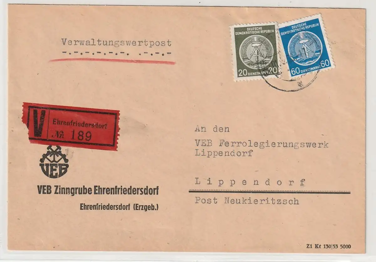 Verwaltungswertpost mit Dienstmarkenfrankatur