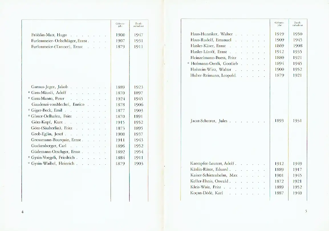 Verzeichnis der Zunftbrüder 1954.