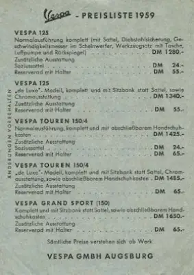 Vespa Preisliste 1959