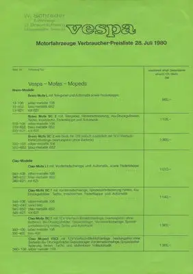 Vespa Preisliste 7.1980