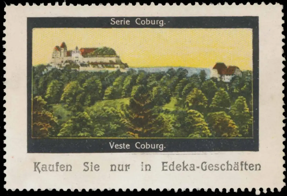Serie Coburg, kaufen Sie nur in Edeka-Geschäften, Größe/Zustand: 5x7 , leicht fleckig, Original alte Reklamemarke die seinerzeit für die Werbung benutzt wurde