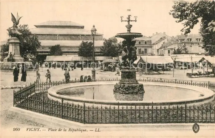 Vichy_Allier Place de la République Fontaine Monument Vichy Allier postalisch nicht gelaufen 1921-1965 Erhaltung siehe scans [FriedD77] Frierer