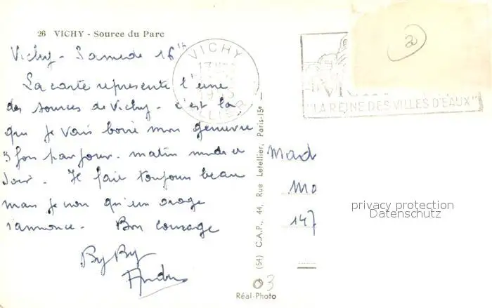 Vichy_Allier Source du Parc Vichy Allier postalisch nicht gelaufen 1956 Erhaltung siehe scans [WerneD78] WernPID7