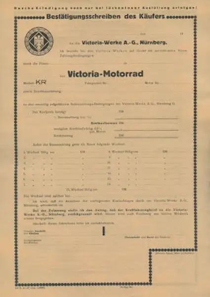 Victoria Bestätigungsschreiben Ratenzahlung 11.1937