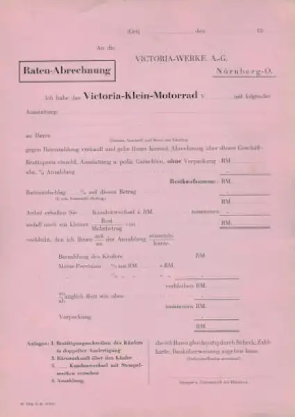 Victoria Kleinmotorrad Ratenabrechnung 1931