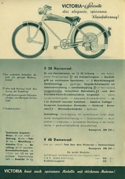 8 Seiten DinA5 Fahrräder, Saxonette und V 99 / 109 N Nr. 3642b.12.38 rzzm Guter Zustand