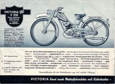 8 Seiten DinA5 Die neuen Victoria Fix Motorfahrräder Nr. 3621 b.2.37.rzzm. Guter Zustand