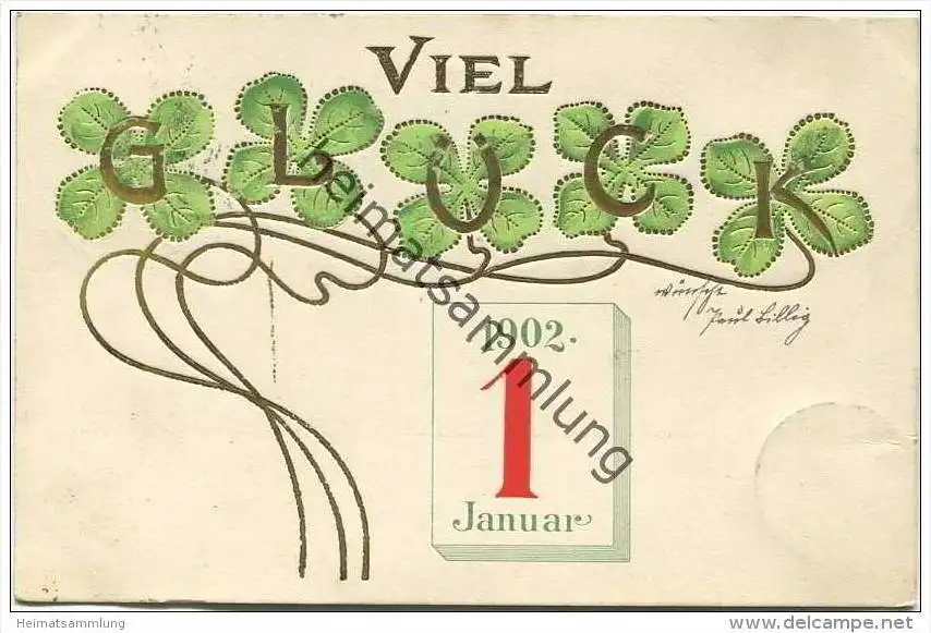 Viel Glück - Kalender 1902 - Glücksklee - Prägedruck (G30307) gel. 1901