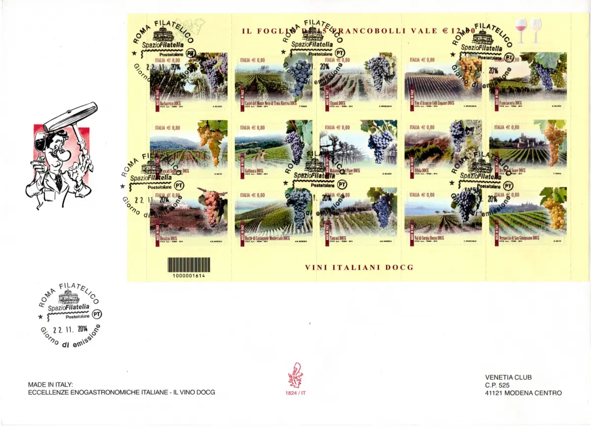 Umschlag - Der DOCG-Weinbogen von 2014 (Sass. Nr. 94) auf Beutel des Venetia Clubs - perfekt - Seltener EuroN.C Katalog. Cod.2267/WEB