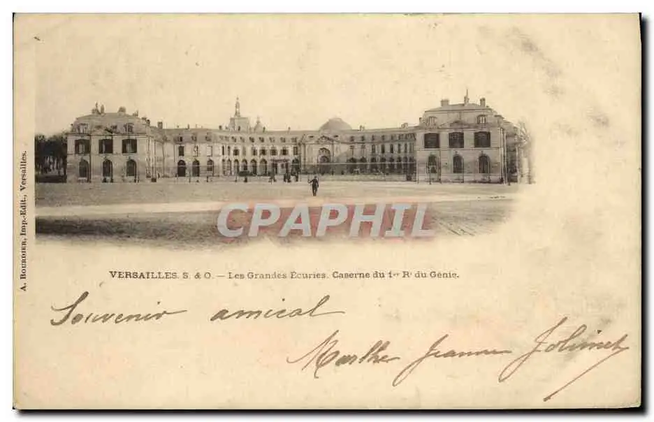 Vintage Postcard Militaria Versailles the large stables Quarters 1st Rgt of the Genius