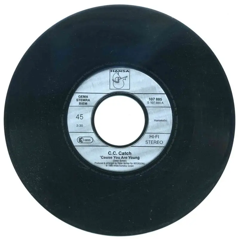 Vinyl-Single: <b><br>C. C. Catch: <br>7\" \'Cause You Are Young / One Night \'s Not Enough </b><br>Hansa 107 885-100, (P) 1986
