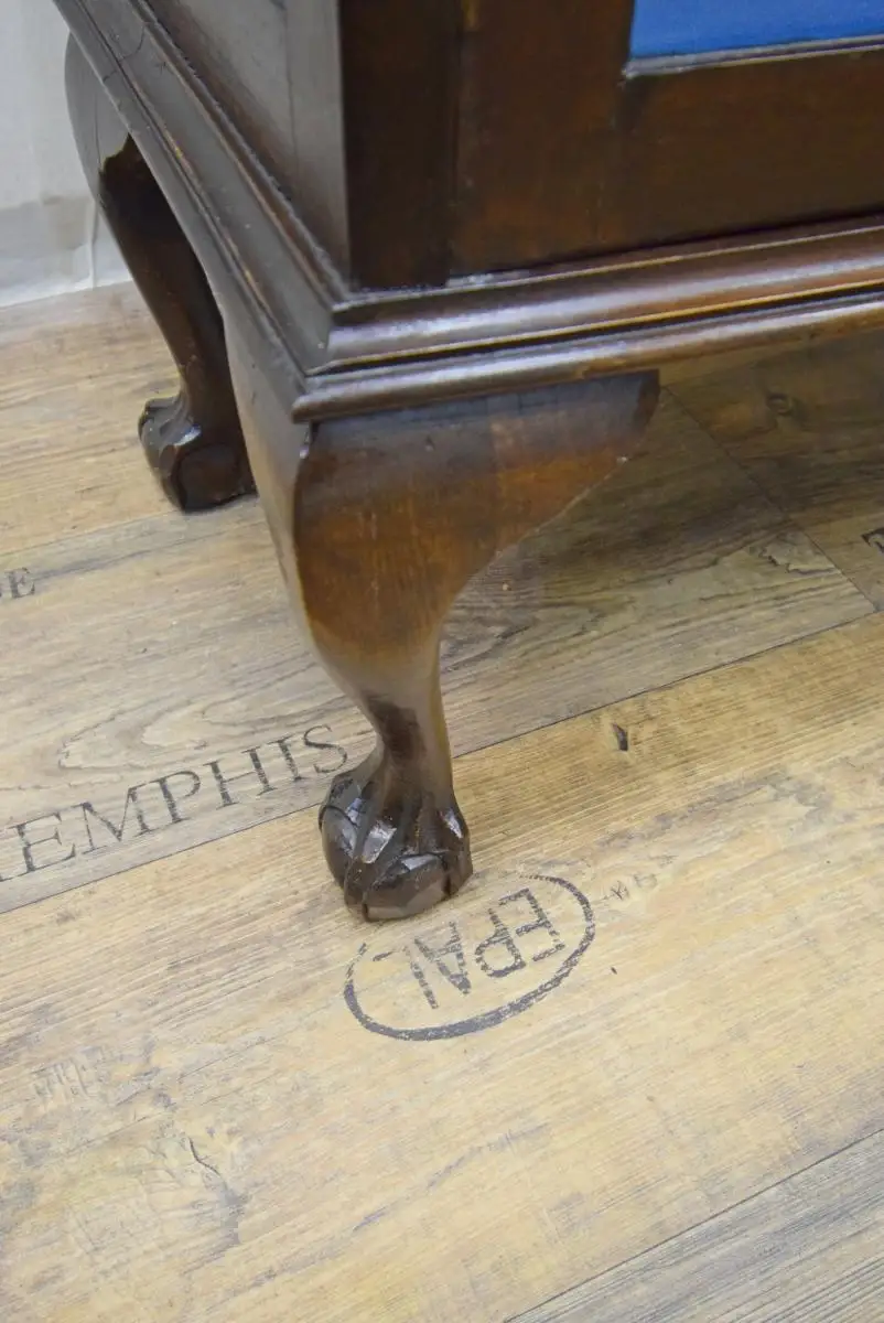 Aus Mahagoni gefertigt und Glanz lackiert bringt sie den gewünschten Inhalt auf ihren Glasböden vor blauem Samt repräsentativ zur Geltung .