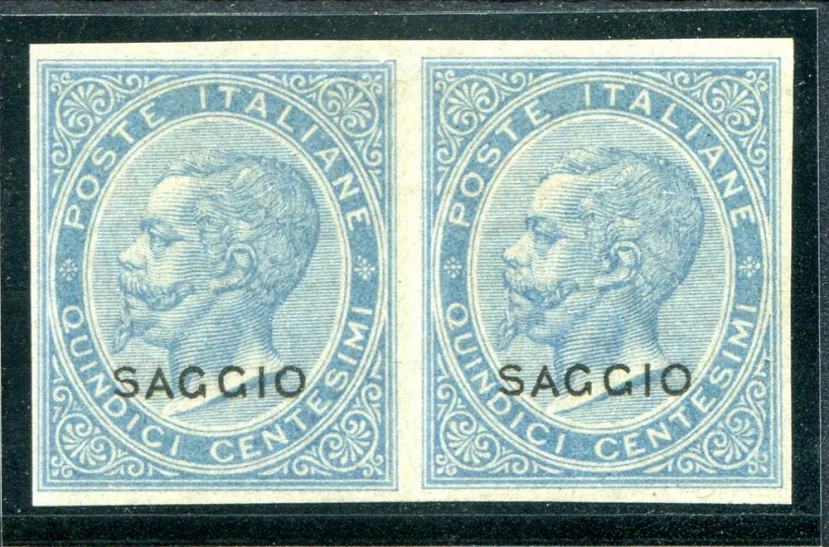Vitt. Emanuele II. Cent. 15 Paar ungezahnte Essay Linguella Spur (MH) - Vitt. Emanuele II. Cent. 15 Nr. L18 ungezähntes Paar mit Aufdruck Saggio - Kat. 360 Code Nr. 158/2