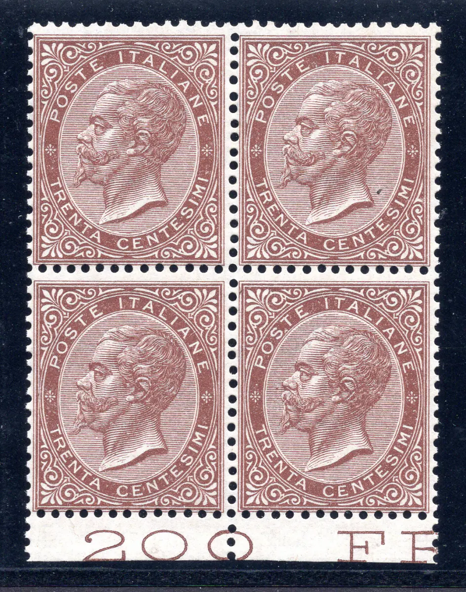Vollgummi MNH - Vitt. Emanuele II. Cent. 30 braun braun Nr. T19 Turiner Auflage Viertelblattrand, sehr frisch mit Vollgummi von guter Zentrierung Cod.2208/WEB