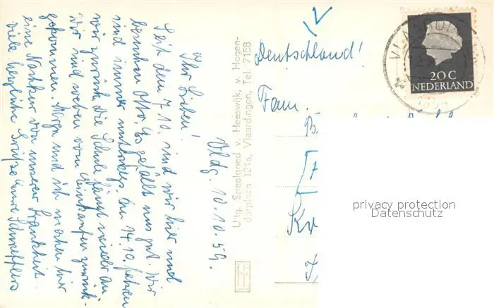 Vlaardingen Flatgebouw v. Bejaarden met Ziekenhuis Vlaardingen postalisch gelaufen 1959 Erhaltung siehe scans [FriedD77] Frierer