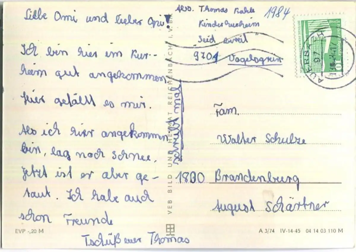 Vogelsgrün - VEB Bild und Heimat Reichenbach (E90474) gel. 1984