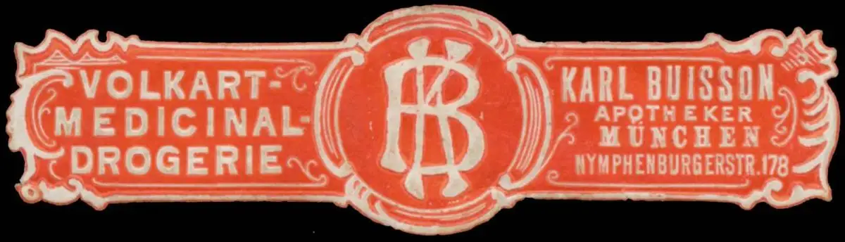 Nymphenburgerstraße 178, Apotheker Karl Buisson, Größe/Zustand: 2x7 , guter Zustand, Original alte Reklamemarke die seinerzeit für die Werbung benutzt wurde