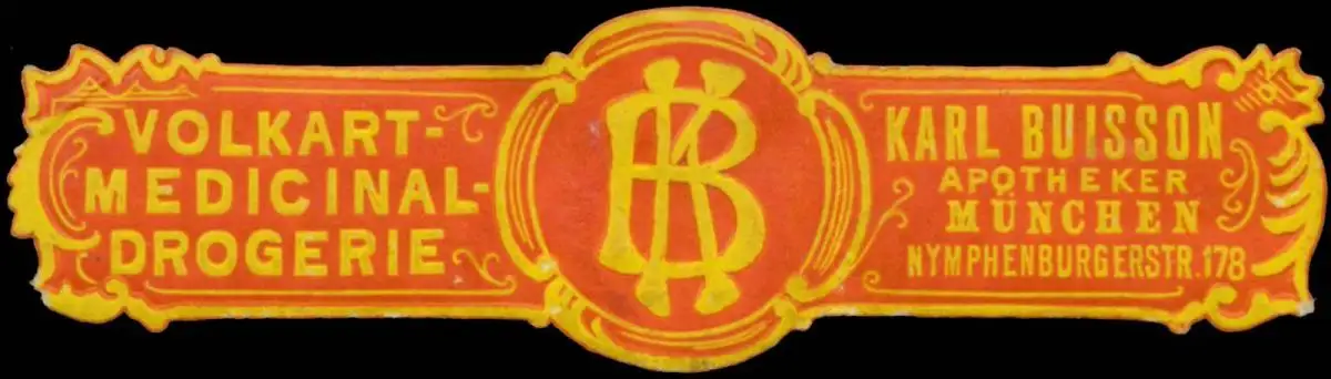 Nymphenburgerstraße 178, Apotheker Karl Buisson, Größe/Zustand: 2x7 , leicht fleckig, Original alte Reklamemarke die seinerzeit für die Werbung benutzt wurde