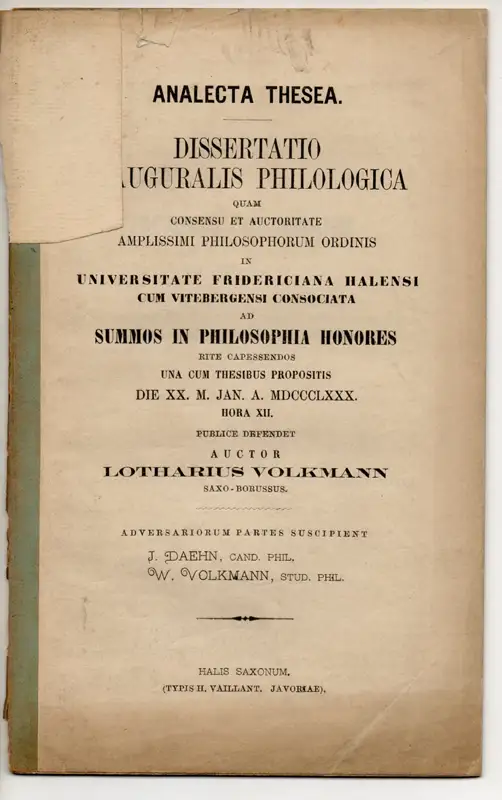 Volkmann, Lothar: Analecta Thesea. Dissertation.