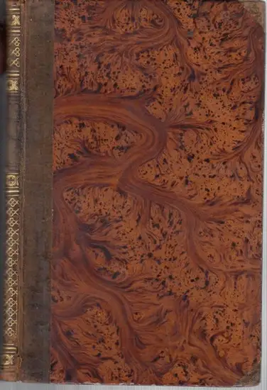 Freie Beschreibung: 18 x 11,5 cm. Dunkelbraunes Original-Halbleder mit Lederecken, goldverziertem Rücken und hellbraun meliertem Bezugspapier. Die Ecken etwas angestoßen, Kapital unten mit kleinem Einriss, die Stehkante mit wenig Abrieb, der Rückentitel schlecht lesbar. 71 Seiten. Innendeckel und Vorsätze leicht leimschattig. Auf dem Titelblatt kleiner alter Besitzerstempel von F. A. Bolle, Apotheker. Insgesamt gutes Exemplar
