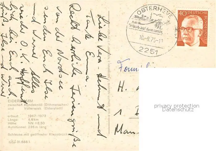 Vollerwiek Eiderdamm Schleuse Vollerwiek postalisch gelaufen 1975 Erhaltung siehe scans [FriedD77] Frierer