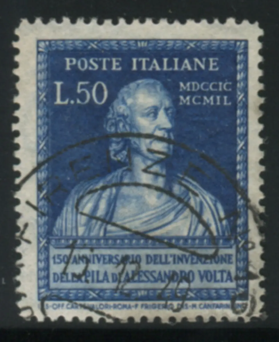 Volta Lire 50 Verzahnung 14,1/4 mit CS-Wasserzeichen + Buchstaben 8/10 Gebraucht - Volta Lire 50 Nr. 612 Verzahnung 14,1/4 mit CS-Wasserzeichen + Buchstaben 8/10 rechts von unten nach oben spiegeln - Ungewöhnlich - Kat. 200 Euro Code 718/3