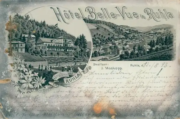 Vorläufer Litho Bad Thal Ruhla in Thüringen, Hotel Belle Vue, 1893