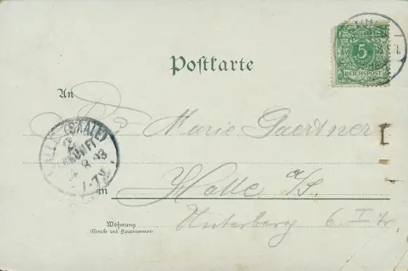 gelaufen 1893, fleckig, Knickspuren, sonst guter Zustand - Inh.: J. Moskopp