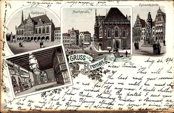 Vorläufer Litho Bremen, Rathaus, Rathaussaal, Marktplatz, Rolandsäule