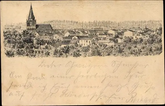 Vorläufer Litho Eberswalde im Kreis Barnim, Gesamtansicht, Kirche
