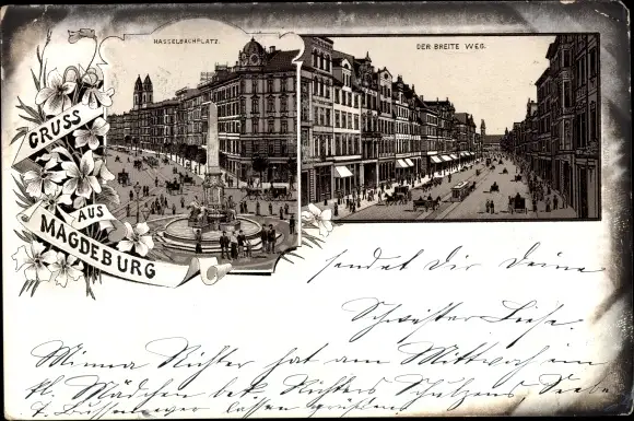 Vorläufer Litho Magdeburg an der Elbe, Der Breite Weg, Hasselbachplatz, 1895
