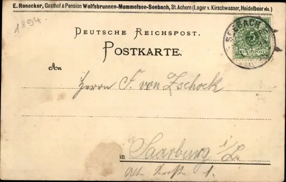 Zustand, siehe Scan, gelaufen, 1894 - ca 15 cm X 9 cm