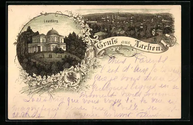 Vorläufer-Lithographie Aachen, 1894, Lousberg, Ortsansicht