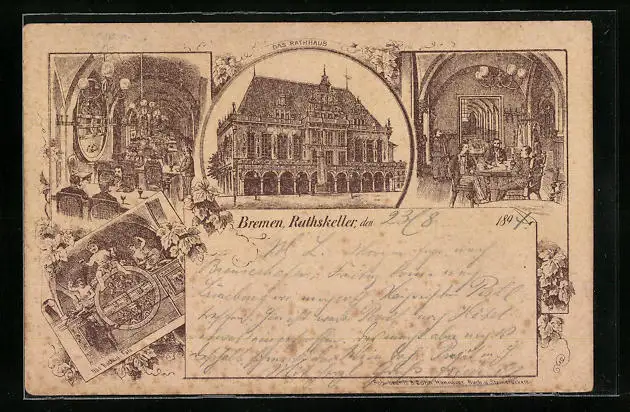 Vorläufer-Lithographie Bremen, Rathskeller, Rathaus 1894