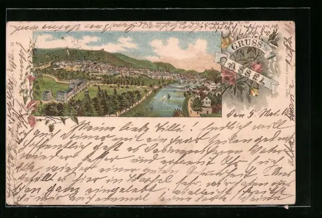 Vorläufer-Lithographie Cassel, 1894, Panoramablick auf die Stadt