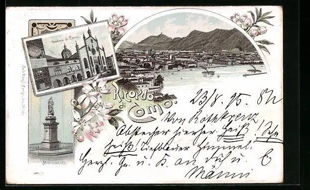 Vorläufer-Lithographie Como, 1895, Duomo di Como, Monumento, Totalansicht