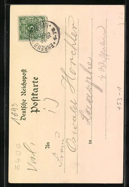 gelaufen 1893, Einriss links oben, Bugspur unten links, guter Zustand