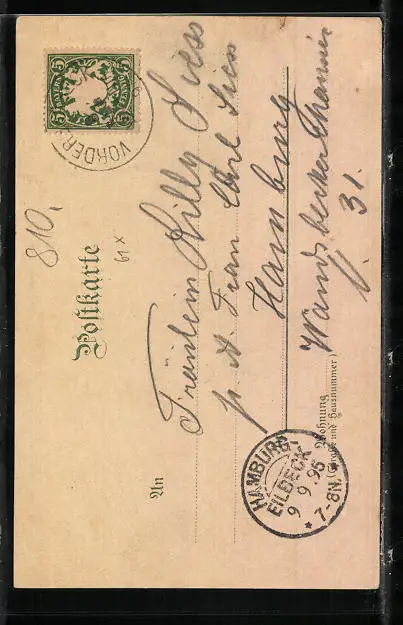 gelaufen 1895, Eckknick re. oben, minimaler Einriss li. oben, guter Zustand