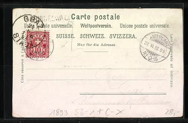 gelaufen 1893, Eckknick re. unten, guter Zustand