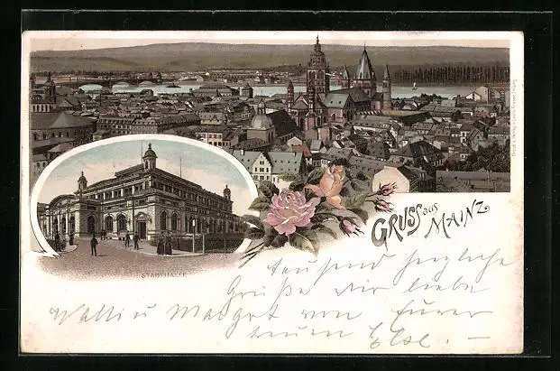 Vorläufer-Lithographie Mainz, Stadthalle, Totalansicht, 1895